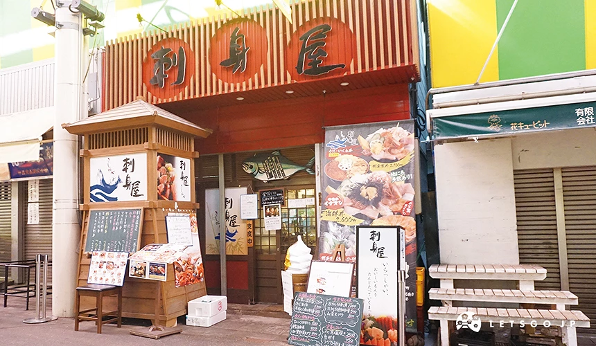 其實這家店賣什麼看店名就知道!刺身屋當然主力還是刺身(中譯:生魚片),比起主流海鮮丼更想一口一口單純品嚐鮮魚滋味的饕客,選刺身屋大啖生魚片絕對是最正確的選擇!當然若你吃完生魚片還覺得不夠飽,店內也提供了10多種海鮮丼讓客人選擇,定番「海鮮丼」上可以看到整顆對半剖開的海膽就直接擺上去的大魄力演出!12位以上的客人就可以包店,如果你是多人數前往,或許把整家店包下來開海鮮宴會,應該會是旅途上最難忘的回憶了!