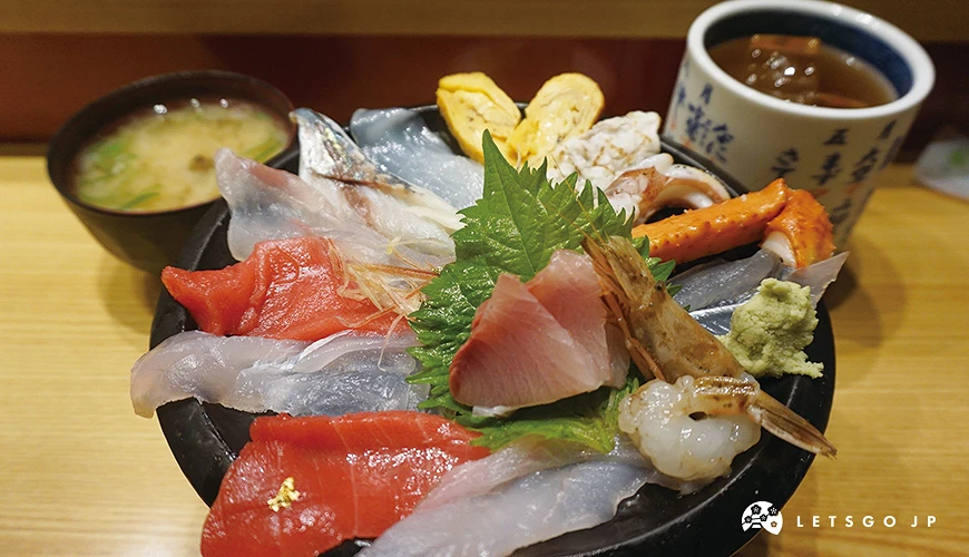 近江町食堂創業於昭和5年(1930年)是近江町市場內最具歷史也是營業最久的食堂。除了必吃的海鮮丼之外,建議挑嘴的饕客們還點能自選海鮮配料的寶箱丼,可以將自己喜歡的魚料通通放到碗裡,吃上一碗人生已滿足!當日市場新鮮進貨的烤魚跟醬燒魚料理等超過100種以上的豐富菜單,無論是中餐、晚餐、甚至宵夜都可以滿足大家想吃美味的慾望。