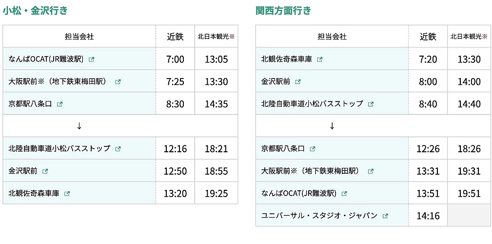 想從大阪、京都到金澤玩的旅客注意!2024年春季起雷鳥號列車(サンダーバード)已不再運行「大阪―金澤」路段,為了提供旅客替代方案與多元交通選擇,近鐵巴士與北日本觀光自動車聯手推出全新「大阪―金澤」特急高速巴士於2023年7月14日上路,方便旅客轉乘、接駁利用。