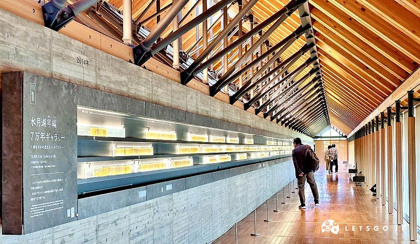 位於三方五湖之一「水月湖」畔的「福井縣年縞博物館」,是世界唯一以「年縞(紋泥層」為主題的博物館。透過館內實際展示的長條地層樣本,可以清楚看見長達約7萬年的自然變遷紀錄,每一層都是地球歲月的痕跡。挑高木質建築與大面落地窗設計,映著湖光山色格外靜謐。別錯過館內咖啡廳推出的「年縞三明治」,以黑白層次麵包重現湖底地層意象,不只造型吸睛,還能一邊享用午餐、一邊眺望窗外的水月湖美景,是學習與放鬆兼具的旅途驛站。